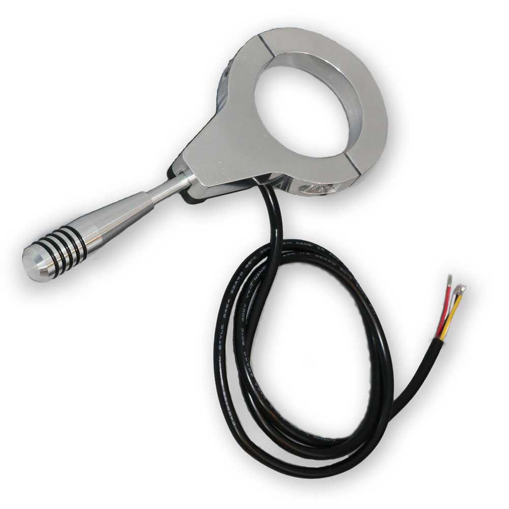 The model 104 turn signal switch provides left and right signal switches for steering column mounting. It features fully sealed electronics in epoxy providing a tough weatherproof turn signal switch that can be used in wet locations, including high pressure spray washing, and has an IP68 rating.